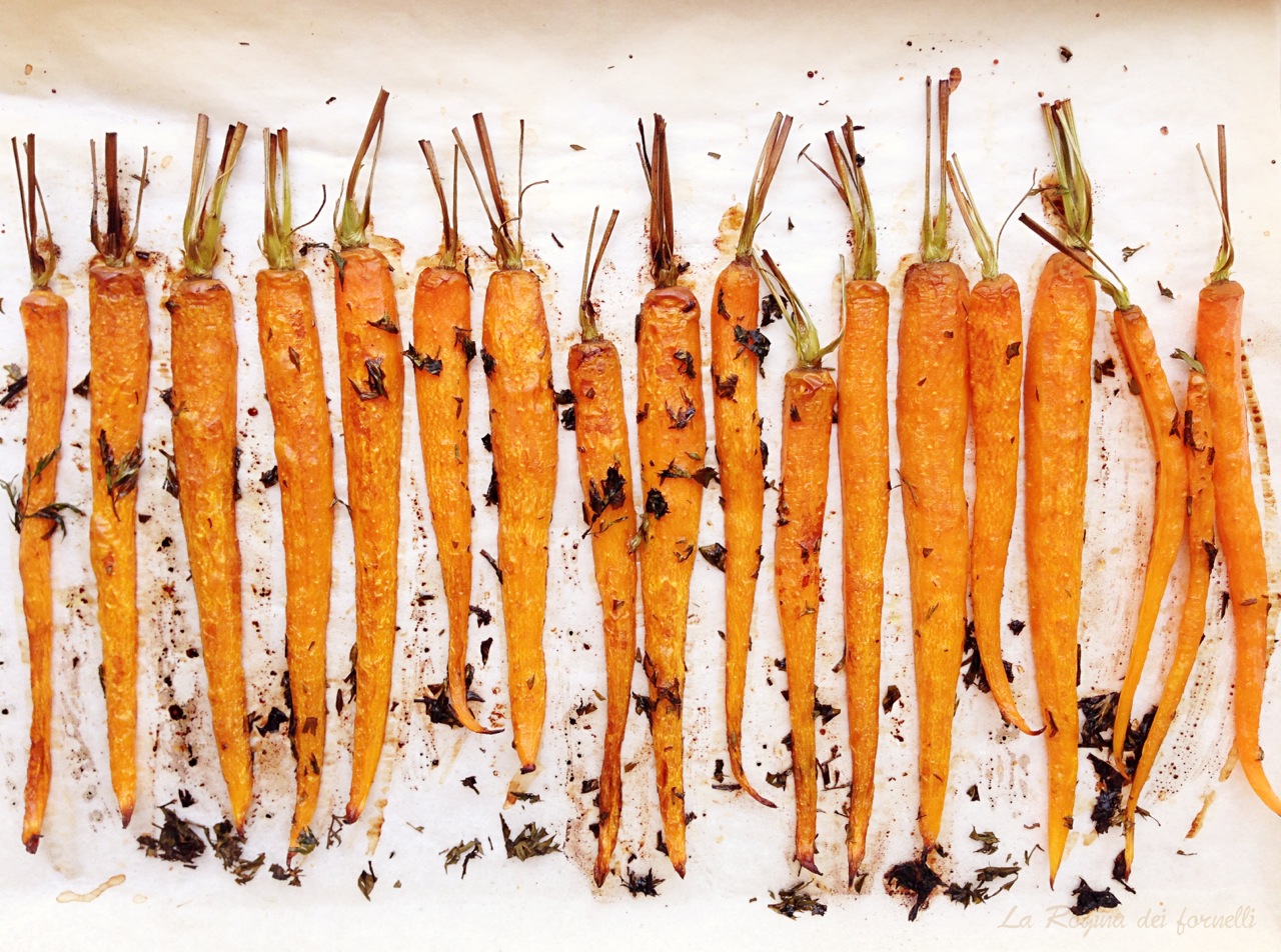 La ricetta l’ho cercata su internet e alla fine l’ho scopiazzata da Col Cavolo (ma quanto sono belle le sue foto ?!?!?!?!?!?!?!?) … nella prima versione ho seguito tutte le indicazioni, poi ho cambiato i condimenti perché il miele, a nostro gusto, copriva troppo il sapore delle carote. Ho anche sostituito il limone con l’aceto balsamico e le ho tagliate a metà per il lungo per velocizzare la cottura, ma la prossima volta le proverò intere, così posso metterne di più nella teglia ed evitiamo di strapparcele dalle mani (e magari riusciamo a mangiarne qualcuna anche io e Cri, visto che queste le hanno divorate praticamente tutte le pupe)!!!