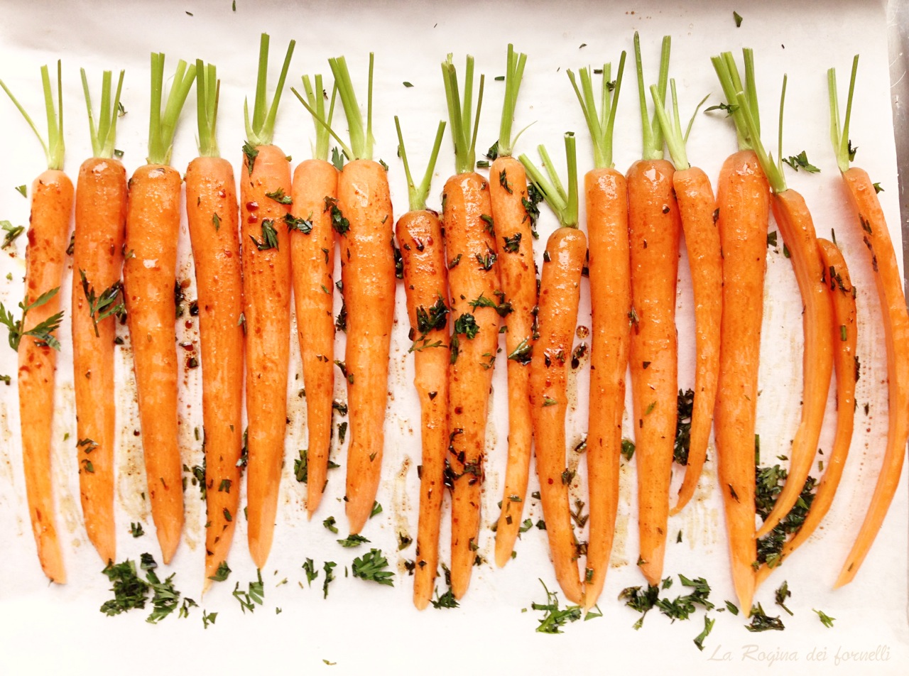 - aggiungere al condimento i ciuffi tritati e spennellare sulle carote