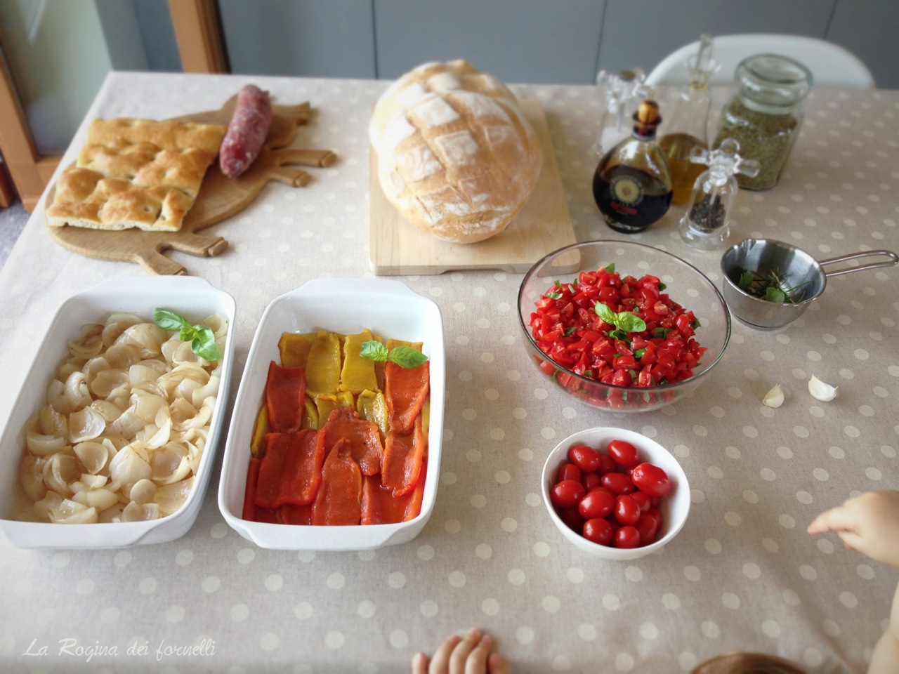 - cipolle: tagliatele a spicchi e sfaldatele leggermente, quindi condite con olio, sale e aceto balsamico