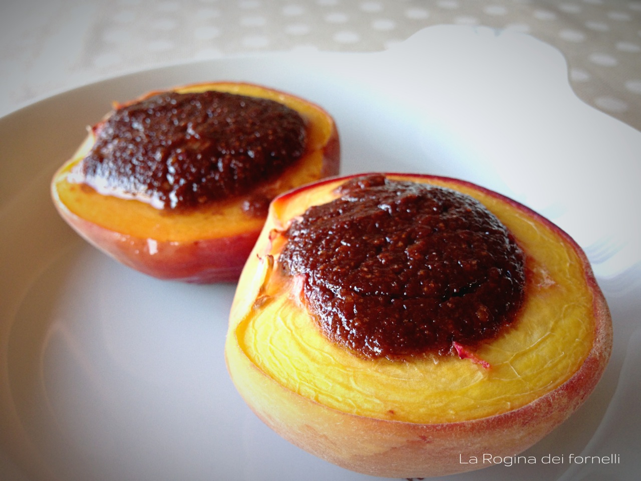 pesche, amaretti e cioccolato