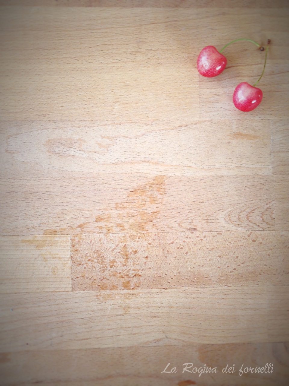 - lavare le ciliegie, tagliarle a metà ed eliminare il nocciolo (appunto personale: devo comprare il denocciolatore … cioè, uno ce l’ho già, ma si lamenta sempre che gli faccio fare i lavori più noiosi !!!)