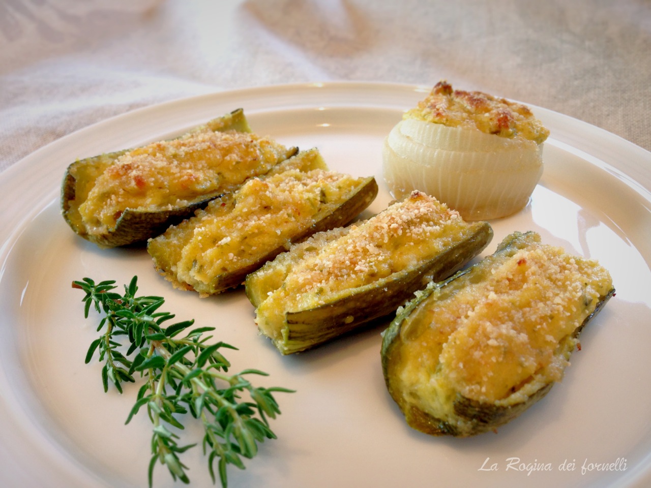 Quando iniziano ad arrivare gli zucchini dall’orto dei miei genitori e poi ancora zucchini e poi ancora e ancora, dopo averli fatti saltati, bolliti, a vapore, in carpione, dopo averli messi in sformati e torte salate … beh, è arrivata l’ora degli zucchini ripieni! La ricetta è piuttosto semplice ma, non so perché, ci metto sempre un sacco di tempo! Forse, semplicemente, esagero con le dosi! “Verdure ripiene” non è forse il titolo più appropriato, visto che uso solo cipolle e zucchini! Già, ma i peperoni e le melanzane li preferisco cucinare in altri modi e i pomodori ripieni li preferisco crudi!